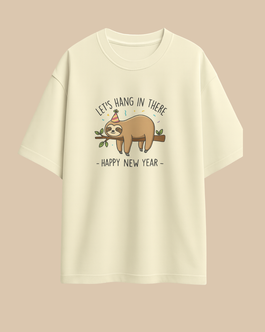 Hang In There Sloth New Year Terry Oversize T-Shirt